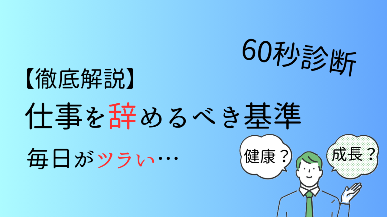 仕事を辞めるべきかどうかの判断は、感情だけでなく客観的な視点が重要です。本記事では「限界度診断」で自分の状態を把握し、具体的なサインを確認することで、適切な行動へとつなげる方法を紹介しました。