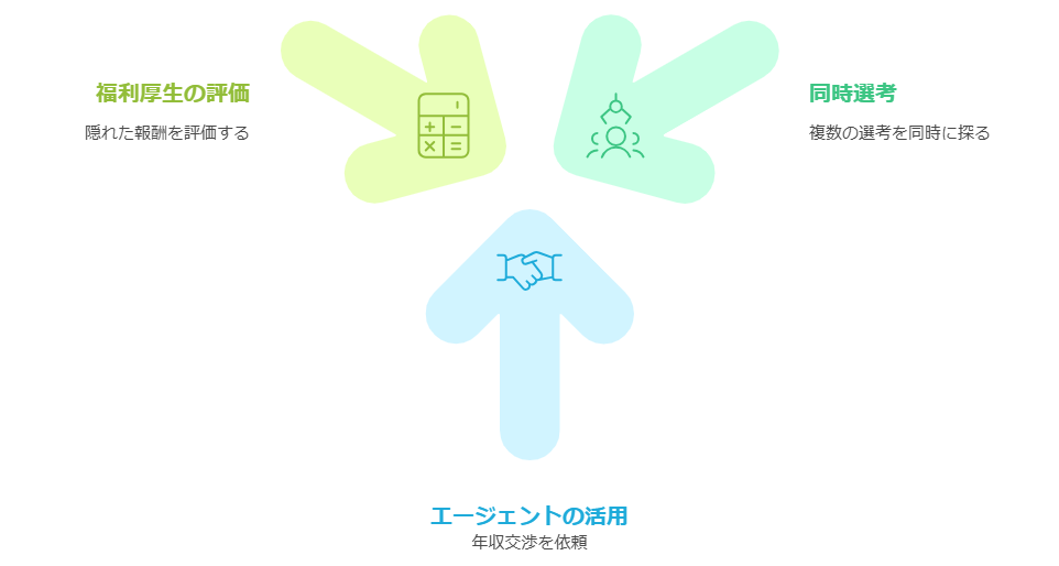 これらを金額換算すると、基本給が同じでも年間50〜100万円の差になることも珍しくありません。交渉の際は、これらの要素も含めた総合的な条件で判断しましょう。